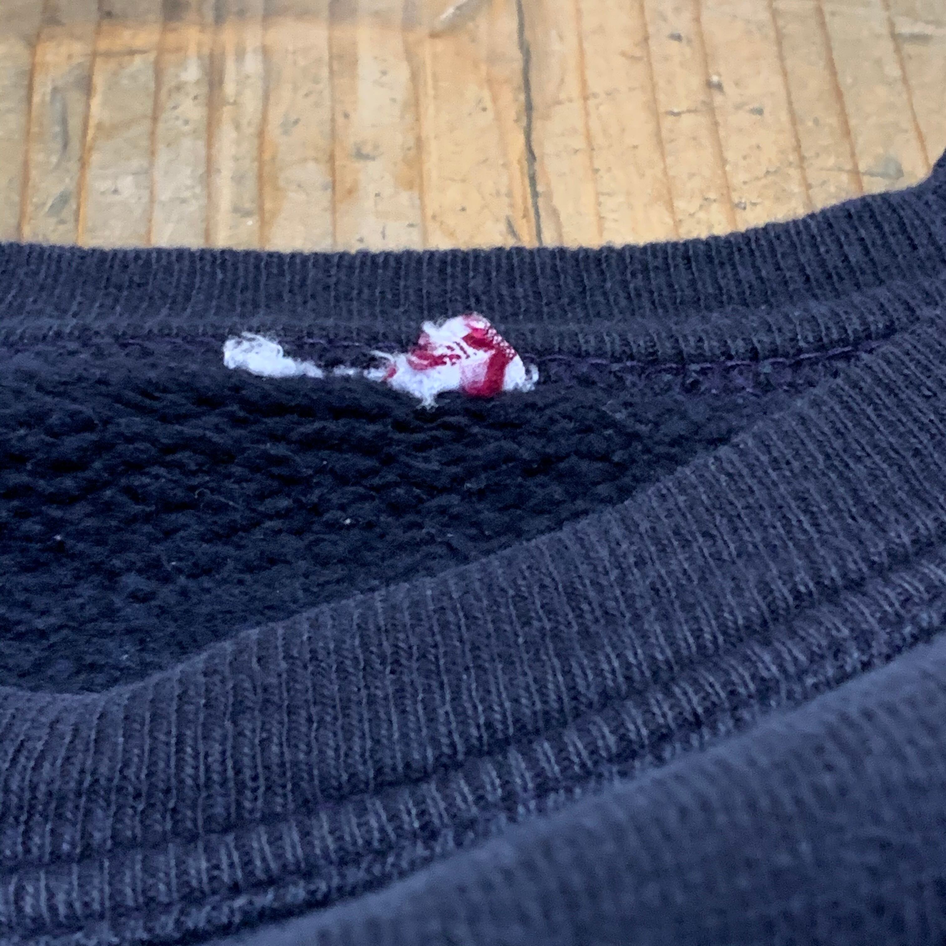 身幅細めの袖短めです。ダメージは無く、リブ長めのオススメスウェットです。